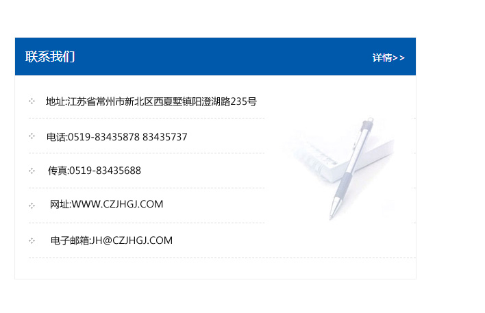 地址:常州市新北區(qū)友邦商務大廈1幢16、17層  電話:0519-85101652  傳真:0519-85112595  郵編:213022  網(wǎng)址:www_cz-jiayue_cn.ehaopay.com  郵箱:xiajifengaa@163.com